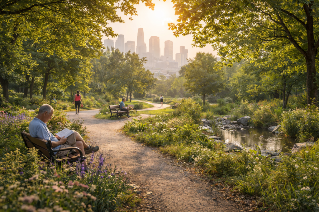 Green space isn’t a luxury—it’s a nervous system reset button. Exposure to green spaces is associated with multiple health benefits, including mental health benefits such as reduced risk of depression and anxiety. (World Health Organization)
